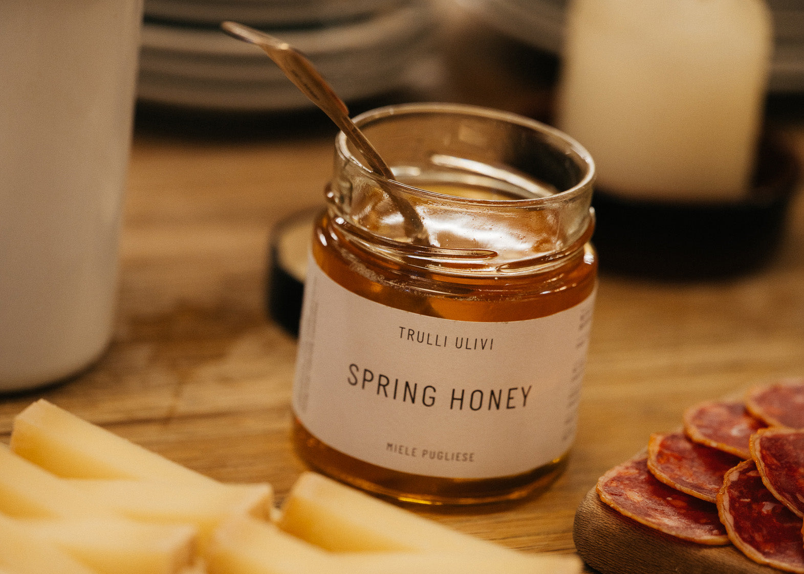 From the wild hills beneath the Ostuni escarpment, bees gather nectar from Sulla, Thyme, Lavender, Strawberry Tree, and more — creating a delicate, aromatic honey unique to our corner of Puglia.